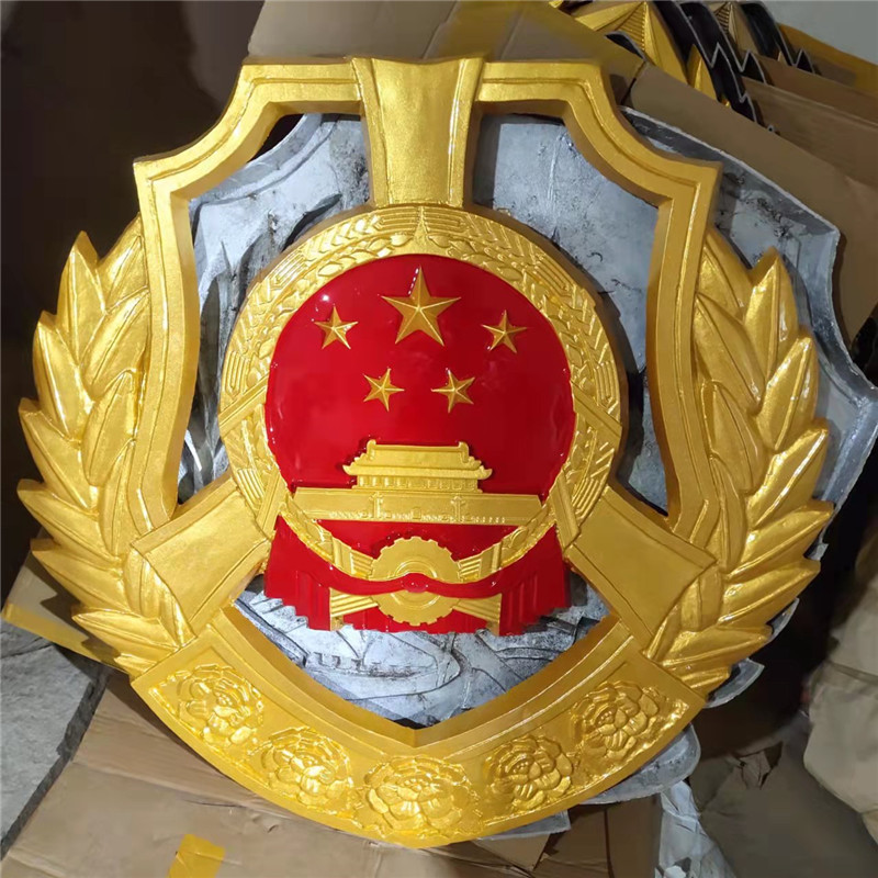 ,整體為盾形,兩側(cè)為橄欖枝下面為五朵牡丹花,盾牌中間為國(guó)徽,國(guó)徽后面的飄帶呈人字形分布。以此來(lái)組成整體的帽徽?qǐng)D案,飄帶代表人民,表示為人民管理城市的理念,國(guó)徽代表著,牡丹花表示構(gòu)建權(quán)責(zé)明晰、服務(wù)為先、管理優(yōu)化、執(zhí)法規(guī)范、安全有序的城市管理體制。